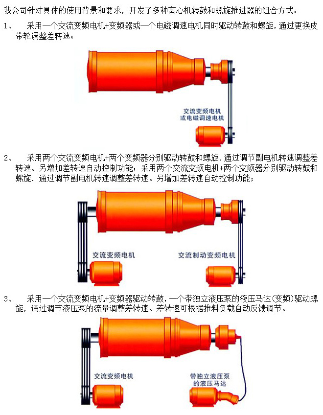 本公司生產的臥螺離心機有LW300、LW350、LW400、LW450、LW500、LW530、LW650、LW760、LW900等九大系列十七種規格,在轉子結構上分為并流、逆流、復合螺旋、雙向擠壓等形式,在用途上則有濃縮、脫水、分級、濃縮脫水一體等機型,因此可廣泛適用于化工、輕工、制藥、食品、環保等行業。