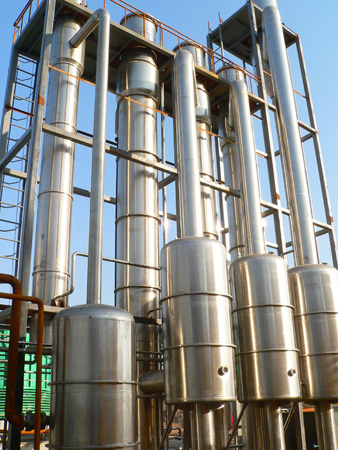 降膜式蒸發器分:單效、雙效、三效、四效、五效、六效蒸發器,適用于牛奶、葡萄糖、木糖、制藥、化工、生物工程、環保工程、廢液回收等行業進行低溫濃縮 。